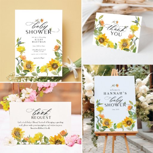 Elegant Yellow Sunflower Sunny Bee Baby Shower Napkins - perfect for a spring or summer garden baby shower!