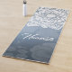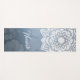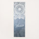 Yoga Studio Meditation Instructor Yoga Mats Template - Chic White Mandala and Blue Metal Floral Damask Background.