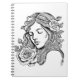 Elegant young lady woman abstract notebook black and white. Roses, flowers in the hair.