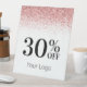 Elegant Your Logo Pink Glitter 30% Off Business Pedestal Sign