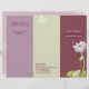 Delicate, elegant Asian lotus flowers in shades of light pink & lavender + pale purple, light sage & marsala coloured background illustrated on custom Business Brochures. Make sure to choose the VALUE paper stock which can be easily folded. Personalise the lovely floral design with your own business info. Wonderful advertising items for a MASSAGE THERAPY | SPA | HAIR SALON | SKIN CARE BUSINESS! Feel free to change the fonts, colours & sizes of the text as well.