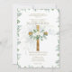 White Roses, Gold Cross, Greenery leaves theme. Elegant modern Christian, Catholic faith wedding invitation with text template fields both sides for you to include wedding ceremony, reception, rsvp, gift registry brief wedding program. *** Elegante y moderna invitación de boda de fe católica y cristiana con campos de plantilla de texto en ambos lados para que usted incluya la ceremonia de boda, recepción, rsvp, registro de regalos breve programa de bodas.