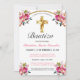 Elegante Tinta Floral Bautizo Cruz De Oro Invitation