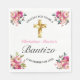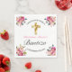 Elegante Tinta Floral Bautizo Cruz De Oro Napkin