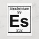 The ninety nineth element (Einsteinium) from the Periodic table. Full version. Great gift for e.g. a 99th birthday.