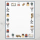 Colourful paper with icons related to school. Great for teachers or kids starting school to get them excited about learning. Icons include backpacks, books, Erlenmeyer flasks, pencils, crayons, globe, scissors, buses, and microscopes. Blue border.