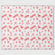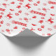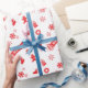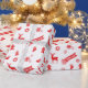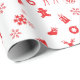 A red seamless repetition of Christmas elements - stockings, gingerbreadman, snowflakes, reindeer, Christmas ornaments, candles, Christmas tree, and the words "Merry Xmas" - in illustration.
