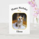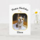 A beautiful calico kitten brings birthday wishes. You can easily personalise this card by changing the name on the front and inside.
