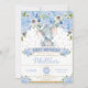 Elephant 1st Birthday Invitation Boy Blue Floral