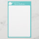"From the desk of" personalised stationery in aqua and white, decorated with a white elephant. Change background colour as preferred.