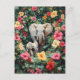 Elephant and Calf Hibiscus Flowers Postcard