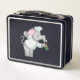 This is a standard metal lunchbox that appears to work just fine. We designed this box ourselves with an uploaded photo and custom text on the front and back. It looks absolutely beautiful except the front of the lunchbox is not centered like it shows in the photo. The print borders don't align with the inset flat part of the box where the preview photo online showed it perfectly centered in there. The back looks nice and centered though.