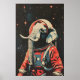 Elephant Astronaut Poster, Elephant Retro Print