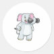 Elephant at Strenght training with Dumbbell Classic Round Sticker