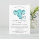 Sweet elephant theme baby shower by mail invitation template card. Send this card to guests who cannot attend the baby shower because of distance etc. It has registry information and sweet message prompting friends and family to send gifts and love via mail.