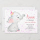 Elephant Baby Girl Blush Pink Confetti Jungle Cute Invitation