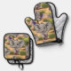 Elephant Baby Jumping Happy in African Savannah Oven Mitt & Pot Holder Set