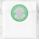 This design features a green background with a repeating pattern of jungle leaves. A cute baby clipart grey elephant sits in the centre of the sticker.