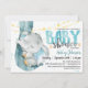 Boy blue elephant baby shower invitation. White, blue, and yellow invite. Great for jungle animal or safari theme showers.