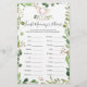 Elephant themed baby shower finish mummy's phrase game card features a watercolor elephant illustration and watercolor greenery eucalyptus garland and elegant handwritten style font.