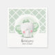 An adorable baby elephant with green ears and bow on its head on a green and white diamond pattern is featured on these gender neutral baby shower napkins. Also available in pink and blue. MATCHING items in our store.