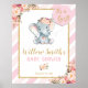 Elephant Baby Shower Girl Pink Welcome Poster Sign