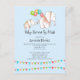 Unique origami mum and baby elephant with a group of balloons and colourful flags in blues, blue greens and red. A baby shower by mail invitation that's perfect for those that live a long distance from loved ones, or in times of social distancing. Support mum to be with the help she needs to start her journey as a mum. You may change the wording and customise with your own special wording. Click "Customise further" to edit the font style, size and colour if you prefer to choose another typeface.