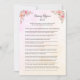 Coral and blush pink watercolor background with floral corners. This is a Baby Nursery Rhymes baby shower game. Adorable baby girl elephant with flowers above her ear and a floral wreath spray under her toes. Coral and blush pink watercolor background with floral corners. Templates provided for you.