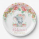 Elephant Baby Shower Pink Blush Floral Baby Girl Paper Plate