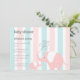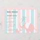 This cute whimsical baby boy baby shower invitation features a mummy and baby elephant in pink on a striped background. Easily customised. ::ENVELOPES INCLUDED::
