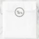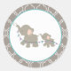 Elephants are marching for joy to welcome baby with this baby shower sticker in teal and lavender.