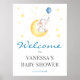 Baby Boy's elephant baby shower welcome sign with adorable baby elephant, moon, stars and balloon. This sign can easily be customized for your event by adding the guest of honor's name and shower date.