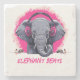 A majestic elephant rocking headphones with a vibrant pink splash background, ready to stomp to the beat.