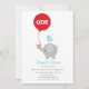 Sweet pastel blue grey elephant with red balloon. Perfect for first birthday invitation