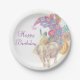 pretty watercolor image of an elephant and a blue bird wishing a happy birthday in text.