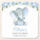 Elephant, Blue Watercolor Flowers, Baby Shower Square Paper Coaster