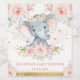 This dreamy design features illustration of an adorable baby elephant surrounded by gorgeous blush pink flowers and delicate watercolor greenery