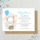 Cute elephant with balloon and shipping box boy Baby Shower by Mail invitation. You can ask the guests to ship their gifts directly to the mum-to-be, or ask the guests to ship their gifts to a "host" who lives near the guest of honour, or you can have an unwrapped baby shower, record the event and ship everything to her afterwards. Maybe you can think of another variation. Would love to hear your idea and/or see pictures. info@lemontreecards,com <<designer
