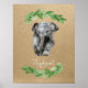 Sweet elephant print, perfectly neutral with a kraft brown background, watercolor greenery, and white calligraphy text.