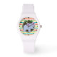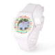 Cool, cute kids cartoon jungle elephant on colourful red, orange, yellow, green, blue, white rainbow stripes pattern. Great jungle, zoo animal theme kid's product.