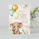 The layout features elegant gold-toned script and clean, modern typography on a soft white background. It is a perfect choice for gender-neutral showers or for celebrating a new baby boy or girl with a jungle or safari theme.