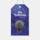 Animal Parade Cute Elephant Dinosaur Gift Tag features our cute Elephant standing in a snowy landscape with a starry night sky with a playful wavy orange and blue border painted by our talented children's illustrator Traci Van Wagoner. On the front above the playful animal art art is a customisable greeting and on the back you'll find the cute dino from the back with your family's name. Make sure to add your personal information or delete the words to make these custom tags your very own. A fun way to tag all your gifts this holiday season. Share a smile today. Custom designs available.