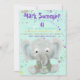 A beautiful animal-themed invitation with a cute baby boy elephant on a stunning blue bubbled background that I hope you adore as I do.