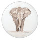 "A delicate watercolor painting of an elephant is featured on this drawer pull, capturing the gentle curves and soft textures of the animal with subtle shades of grey and hints of muted colour. The design brings a touch of whimsy and charm to furniture, making it a unique and artistic accent for any room."