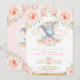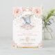 Elephant Girl 1st Birthday Blush Pink Gold Floral Invitation