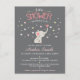 Elephant baby girl shower invitations with adorable baby elephant being showered with love hearts. These adorable baby girl elephant baby shower invitations are easily customised for your event by simply adding your details. Many adorable matching baby girl elephant items to complete the whole theme of your baby shower.