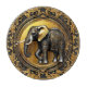 A majestic black elephant, symbolising strength and wisdom, is depicted against a backdrop of intricate gold ornamental frame, exuding a sense of grandeur and elegance. The contrast between the dark silhouette of the elephant and the shimmering gold details of the frame creates a visually striking and captivating image.