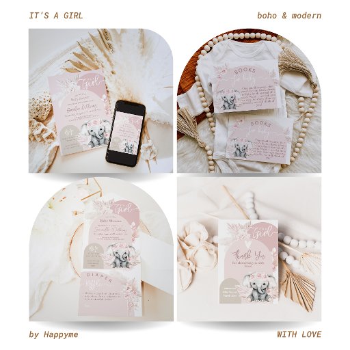 Elephant It's a Girl Boho Floral Pink Baby Shower