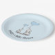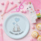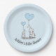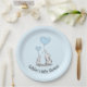 Elephant Love Blue Heart Balloons Design Paper Plate with customisable text and your choice of background colour.