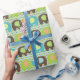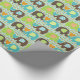 Elephants of brown, lime, and aqua blue with orange and aqua hearts on a chevron striped background, a cute, fun wrapping paper perfect for birthdays or other occasions!